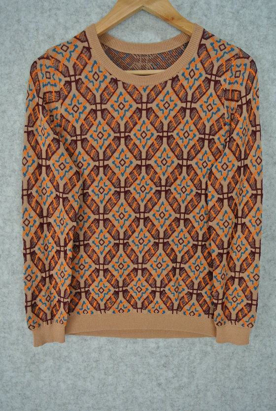 18SS-004 12GG 1/24 89%RAYON 11%NYLON LADIES' KNITTED ROUND NECK LONG SLEEVE COLORFUL JACQUARD PULLOVER
