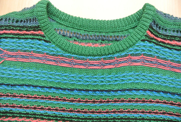 18SS-066 7GG 48%COTTON 32%NYLON 13%LINEN 7%LUREX LADIES' KNITTED ROUND NECK LONG SLEEVE COLORFUL STRIPES JACQUARD PULLOVER