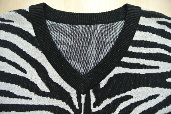 2043-1A 12GG 2/48 40%BAMBOO 30%COTTON 20%NYLON 10%VISCOSE LADIES' KNITTED V NECK LONG SLEEVE ZEBRA JACQUARD PULLOVER