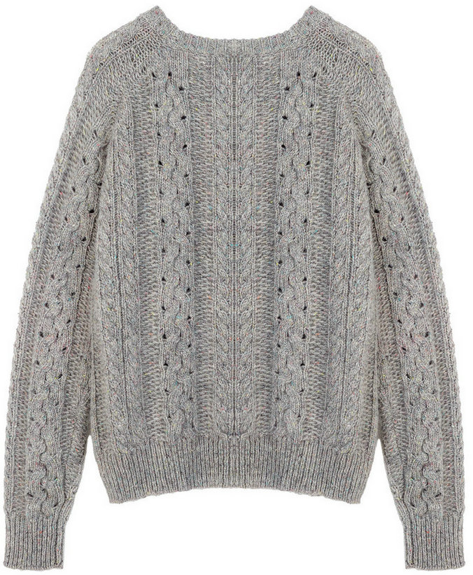 2085-1 3GG 1/3 85%WOOL 10%ALPACA 5%SILK LADIES' KNITTED ROUND NECK RAGLAN SLEEVE PULLOVER WITH ARAN CABLE