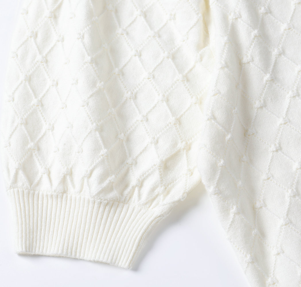 21008-A 14GG 2/50 72%VISCOSE 28%PBT LADIES' KNITTED SQUARE NECK SHORT SLEEVE DIAMOND JACQUARD PULLOVER