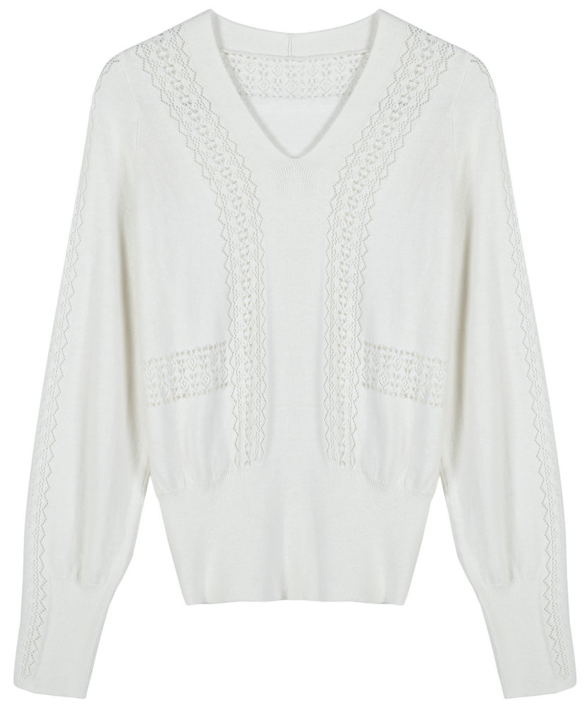 21012 12GG 2/28 60%COTTON 30%NYLON 10%WOOL LADIES' KNITTED V NECK LONG SLEEVE POINTELLE PULLOVER