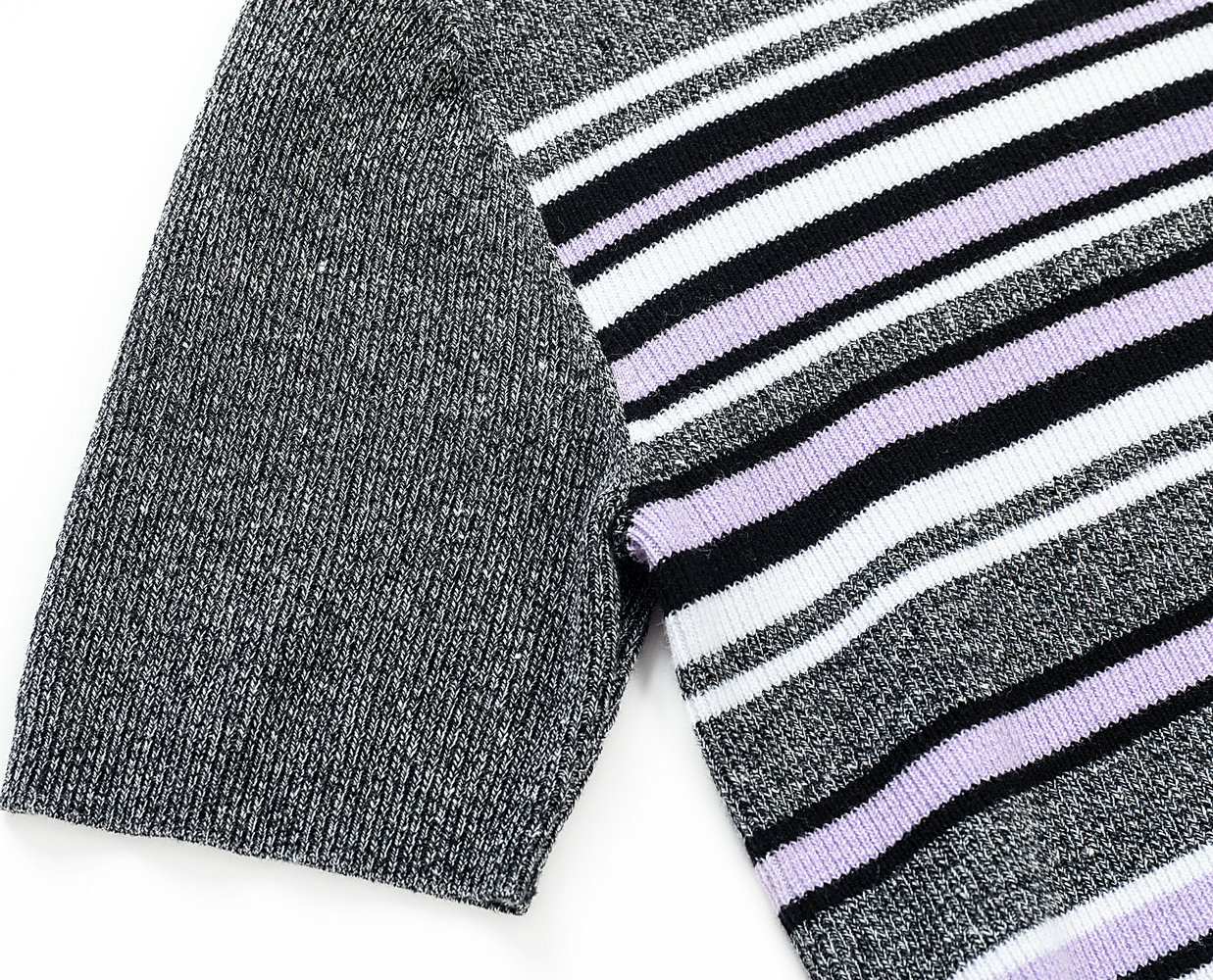 21073 12GG 2/32 100%COTTON WITH 2/70D 100%NYLON LADIES' KNITTED ROUND NECK SHORT SLEEVE 3 COLORS STRIPES PULLOVER