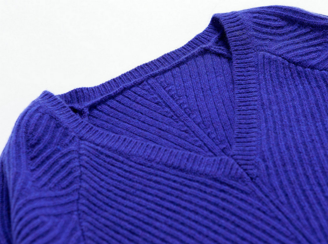 2154-1 5GG 2/17.5 100%WOOL LADIES' KNITTED V NECK RAGLAN SLEEVE CABLE FULL FASHION PULLOVER