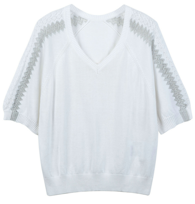 2163-1 12GG 2/30 60%VISCOSE 40%COTTON LADIES' KNITTED V NECK RAGLAN SLEEVE LUREX POINTELL PULLOVER