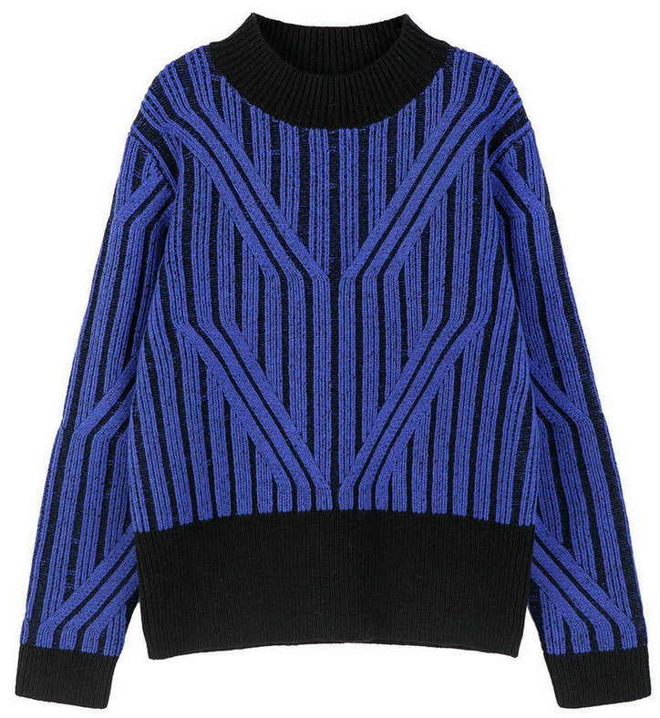2194-1 5GG 2/17.5 100%WOOL LADIES' KNITTED ROUND NECK LONG SLEEVE MELANGE COLOR DOUBLE LAYER STRIPES PULLOVER