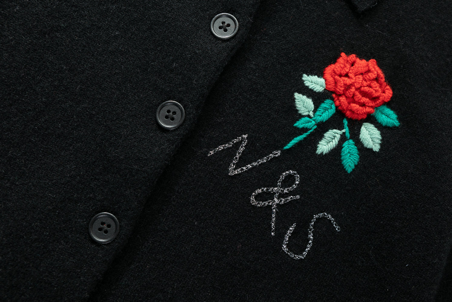 22041-A WOMEN’S KNITTED CARDIGAN SHIRT COLLAR LONG SLEEVE WITH BUTTONS AND FLOWER EMBROIDERY MOQ 200PCS/COLOR
