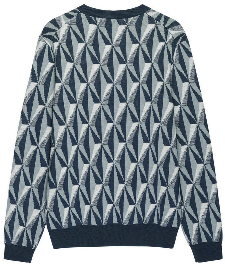 2236-1 12GG 2/48 100%WOOL MEN'S KNITTED ROUND NECK LONG SLEEVE DIAMOND JACQUARD PULLOVER