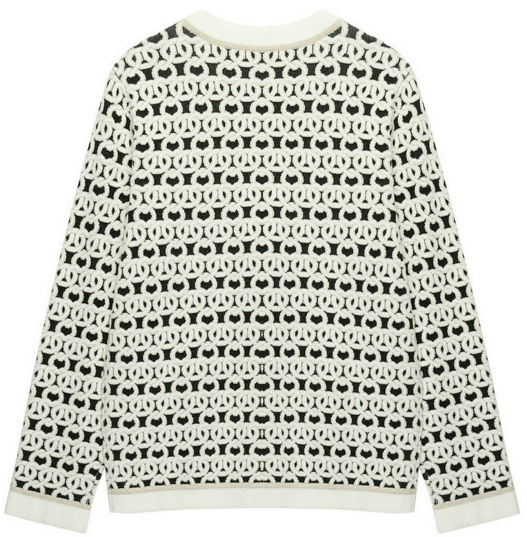 2243-1 14GG 2/28 38%COTTON 31%VISCOSE 20%NYLON 11%WOOL LADIES' KNITTED V NECK LONG SLEEVE LUREX JACQUARD CARDIGAN WITH METAL BUTTONS AND PATCH POCKETS