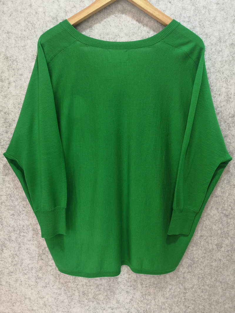 387 14GG 3/80 100%WOOL LADIES' KNITTED DEEP V NECK 3/4 SLEEVE PULLOVER WITH HORIZONTAL KNITTING LOOP