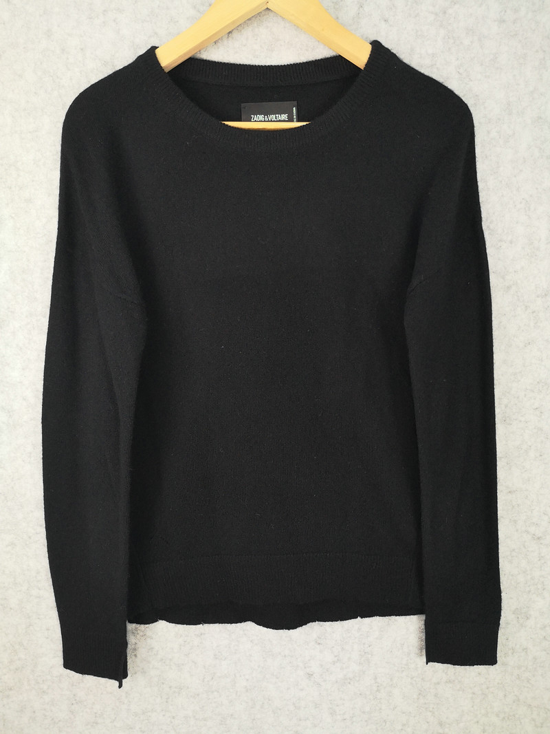 CICI C PATCH 12GG 2/26 100%CASHMERE LADIES' KNITTED ROUND NECK LONG SLEEVE STAR METAL LEATHER PULLOVER WITH SIDESEAM FRONT