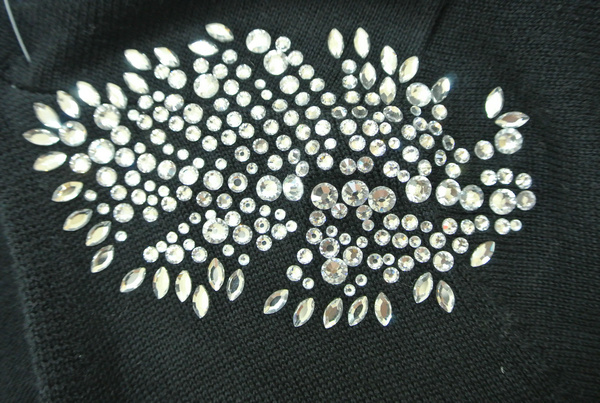 DARLO-2 12GG 2/48 70%COTTON 25%SILK 5%CASHMERE LADIES' KNITTED V NECK LONG SLEEVE HOT FIX PULLOVER WITH TIE AT CUFF