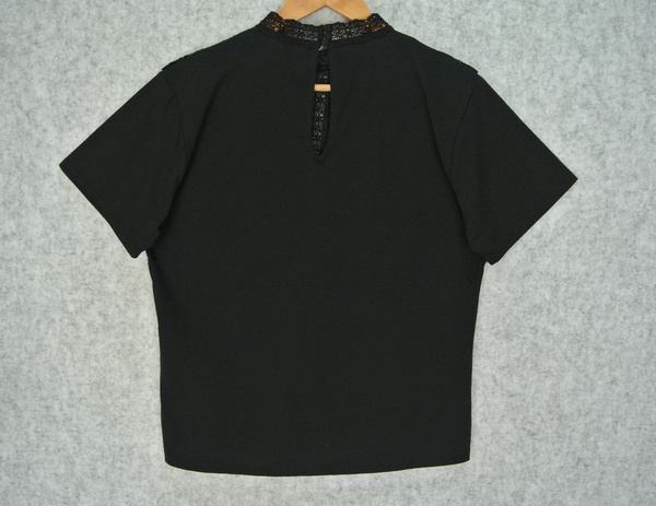 You are here : Home > Products > FTSC20004K WOMEN’S JUMPER JERSEY KNIT LACE ROUND NECK SHORT SLEEVE WITH LACE CHEST AND PLEATS MOQ 200PCS/COLOR