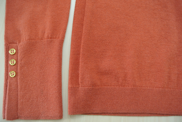 HIDI 14GG 2/48 70%WOOL 30%SILK LADIES' KNITTED V NECK LONG SLEEVE PULLOVER WITH CUFF SLITS AND BUTTONS