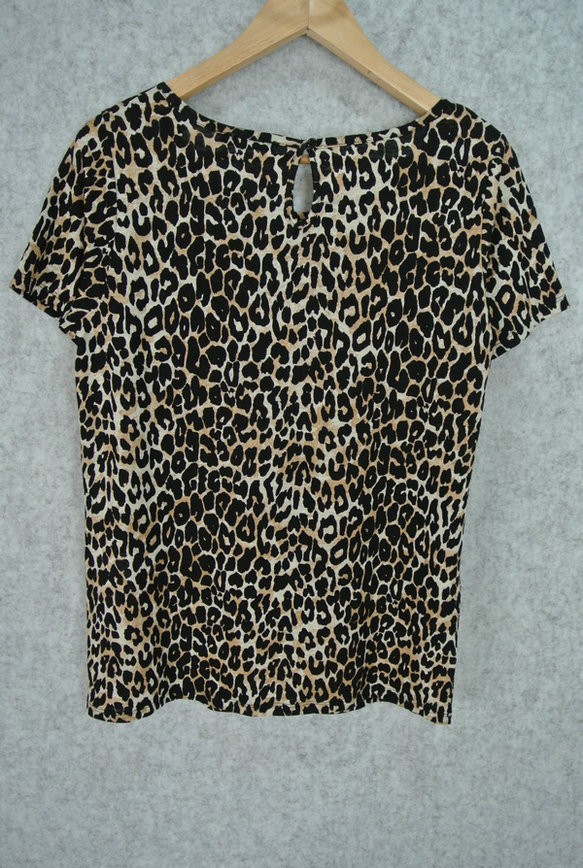 KTOP13K601 TANIA 26S 100%LINEN 200GSM LADIES' JERSEY ROUND NECK SHORT SLEEVE LEOPARD PRINTING PULLOVER WITH HOLE AT BACK NECK