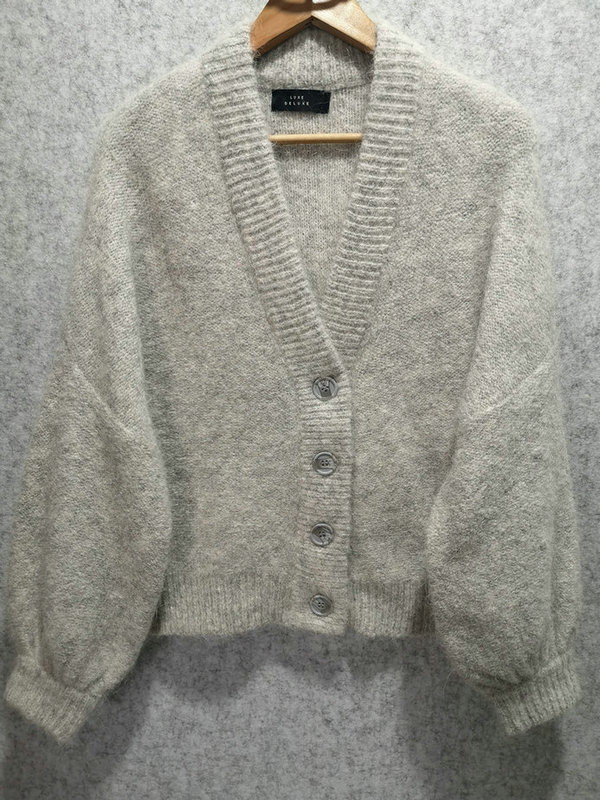 LDW19 1448 3GG 1/4.2 52%ALPACA 30%NYLON 16%ACRYLIC 2%ELASTANE V NECK BIG FRENCH SLEEVE REVERSE KNIT CARDIGAN