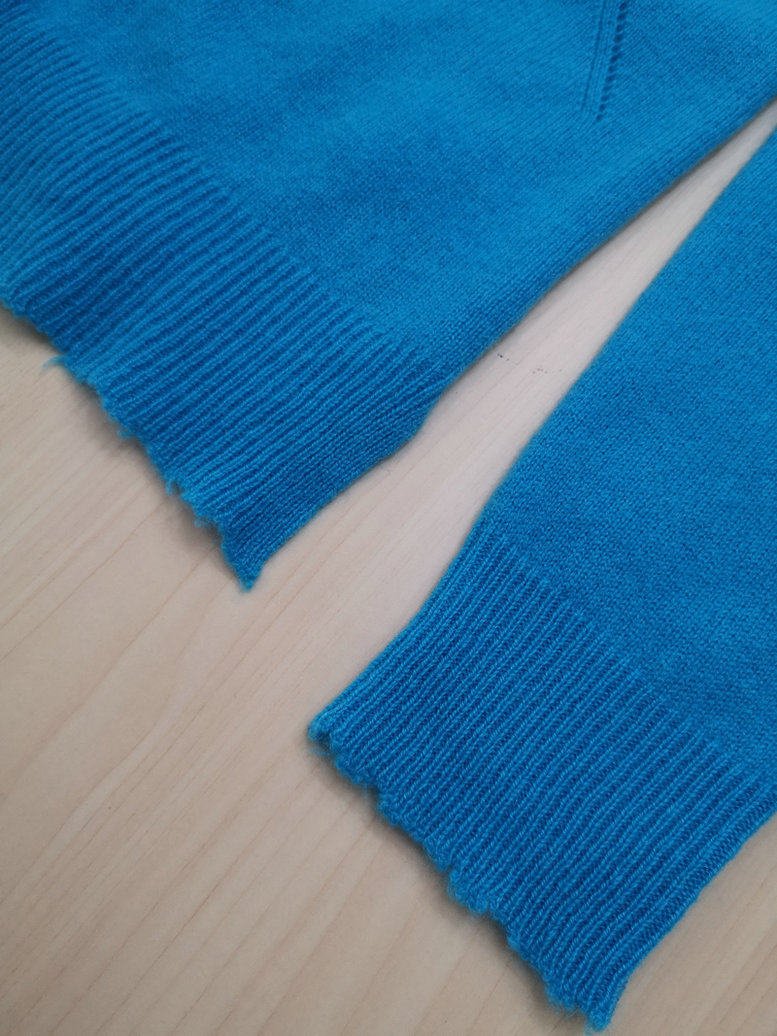 MARLA C 9GG 2/24 100%CASHMERE LADIES' KNITTED ROUND NECK LONG SLEEVE POINTELLE RAW CUT CARDIGAN WITHOUT BUTTONS