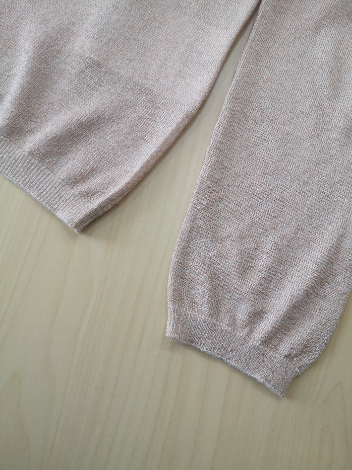 MATEAU 12GG 2/30 100%VISCOSE LADIES' KNITTED V NECK LONG SLEEVE PULLOVER WITH MESH AT NECKLINE