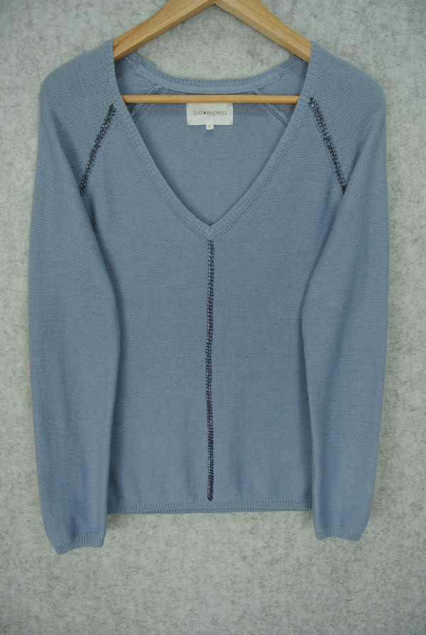 MOSSART 7GG 2/28 80%COTTON 20%WOOL LADIES' KNITTED ROUND NECK LONG SLEEVE BEADING EMBROIDERY PULLOVER