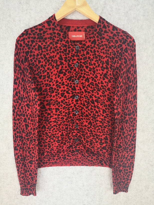 NINON CP LEO PRINT 14GG 2/60 100%CASHMERE LADIES' KNITTED ROUND NECK LONG SLEEVE LEOPARD PRINTING CARDIGAN