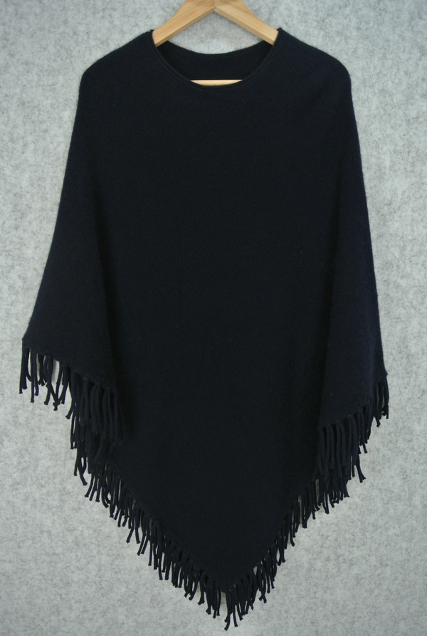 PHDH61 7GG 2/26 100%CASHMERE LADIES' KNITTED ROUND NECK WRAP WITH FRINGES AT BOTTOM