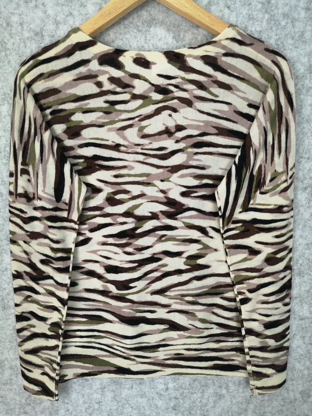 PU HANAE ML 14GG 2/48 100%WOOL LADIES' KNITTED ROUND NECK LONG SLEEVE ZEBRA PRINTING PULLOVER