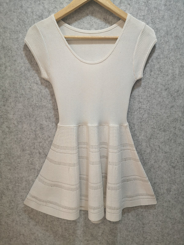 SPNG-1 12GG 1/24 63%VISCOSE 37%NYLON LADIES' KNITTED ROUND NECK SHORT SLEEVE DROP STITCH DRESS
