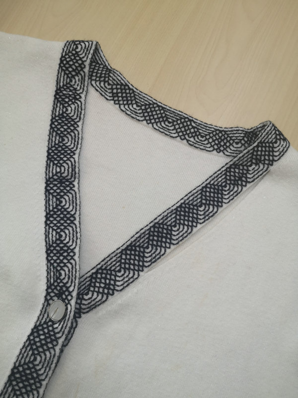 SS1929 12GG 2/48 49%VISCOSE 28%PBT 20%NYLON 3%LUREX LADIES' KNITTED V NECK BIG FRENCH SLEEVE JACQUARD CARDIGAN