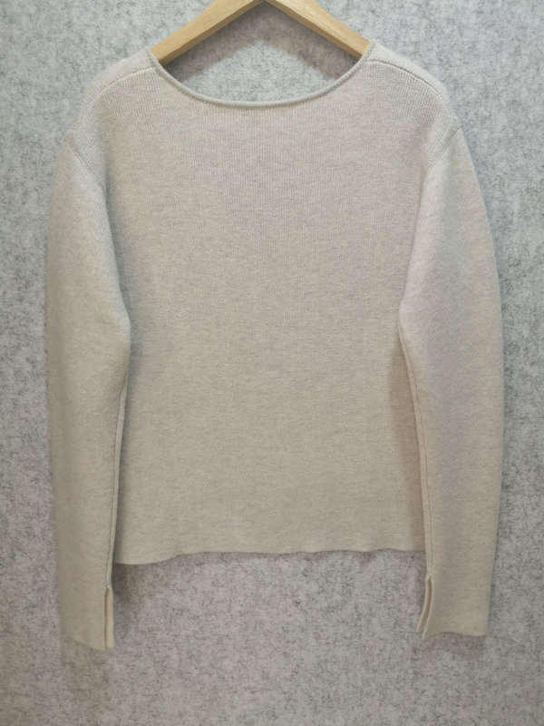 T018-FPU048 7GG 2/26 70%WOOL 30%CASHMERE LADIES' KNITTED V NECK LONG SLEEVE COLOR OVERLAP FULLNEEDLE PULLOVER WITH BOTTOM FRONT SHORTER AND BACK LONGER