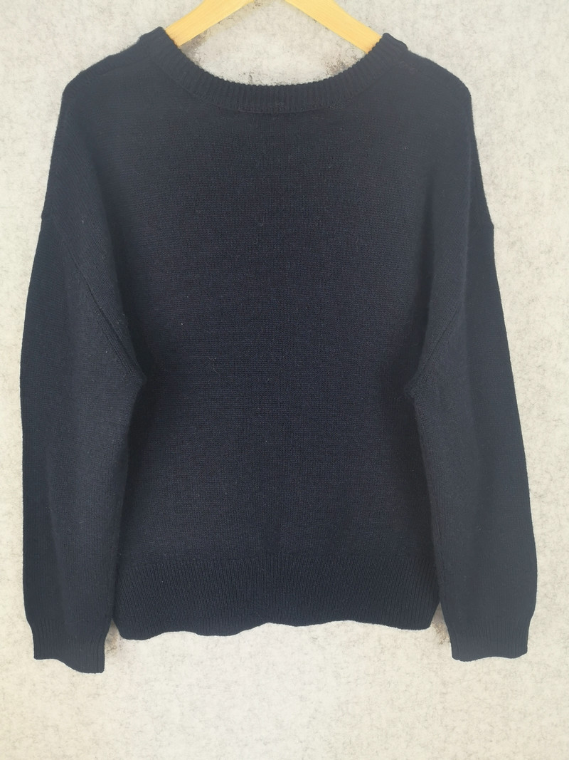 WNE08 7GG 2/26 100%CASHMERE LADIES' KNITTED ROUND NECK LONG SLEEVE PULLOVER WITH HAND EMBROIDERY OF LETTERS