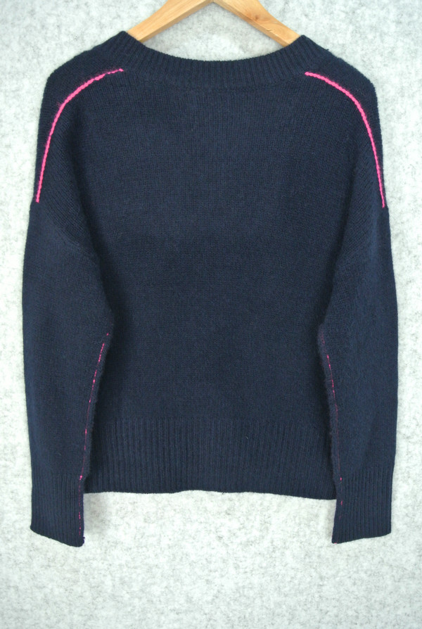 WPM487 3GG 2/26 100%CASHMERE LADIES' KNITTED V NECK LONG SLEEVE PULLOVER WITH CONTRAST COLOR LINE