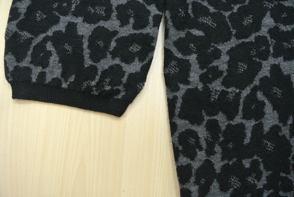 YP035 14GG 2/48 100%WOOL LADIES' KNITTED ROUND NECK SHORT SLEEVE LEOPARD JACQUARD PULLOVER